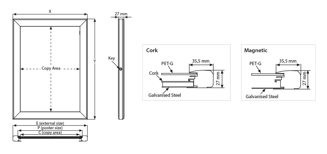 | MANTARLI | MANYETİK | DIŞ EBAT (x-y) | GÖRÜNEN EBAT | POSTER EBADI | KAPASİTE | ANAHTAR | PAKETLİ | *EN X BOY X DERİNLİK |